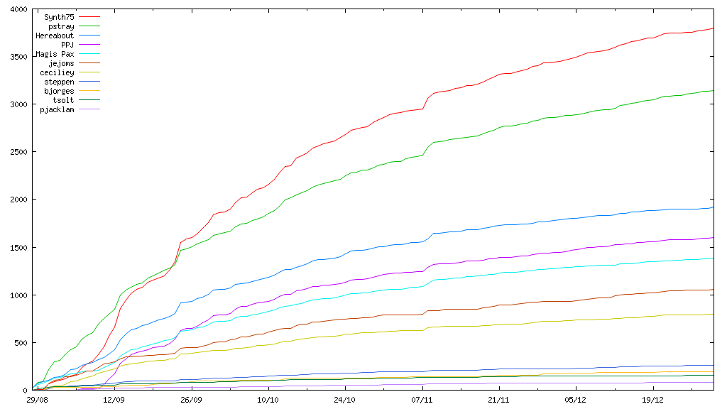 Grafen under viser poengutviklingen frem til spillets slutt, 2009-12-31.